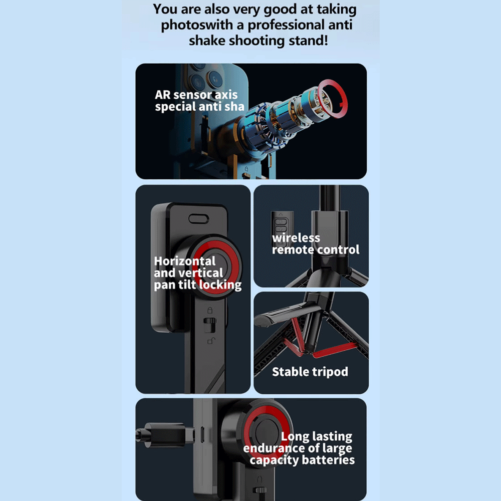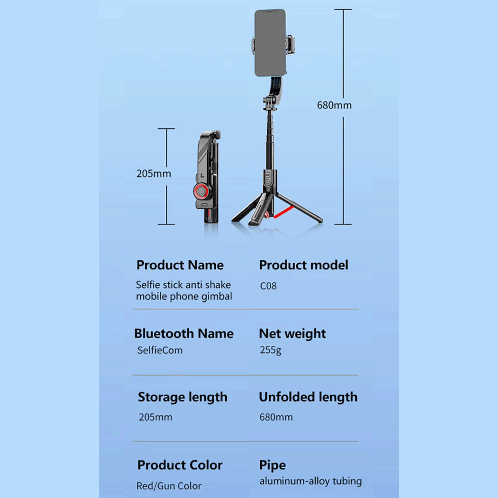 C08 Handheld Cell Phone Stabilizer Gimbal 1 Axis Phone Stable Tripod with Wireless Remote 360 Rotation Selfie Stick