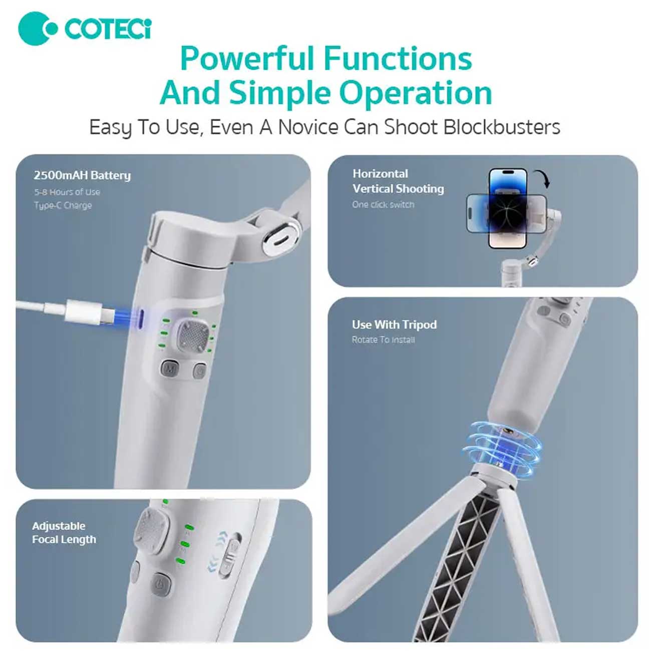 گیمبال سهمحوره کوتسی IH-001 با پایه تاشو بهترین همراهت در ضبط ویدئو و لایو است.