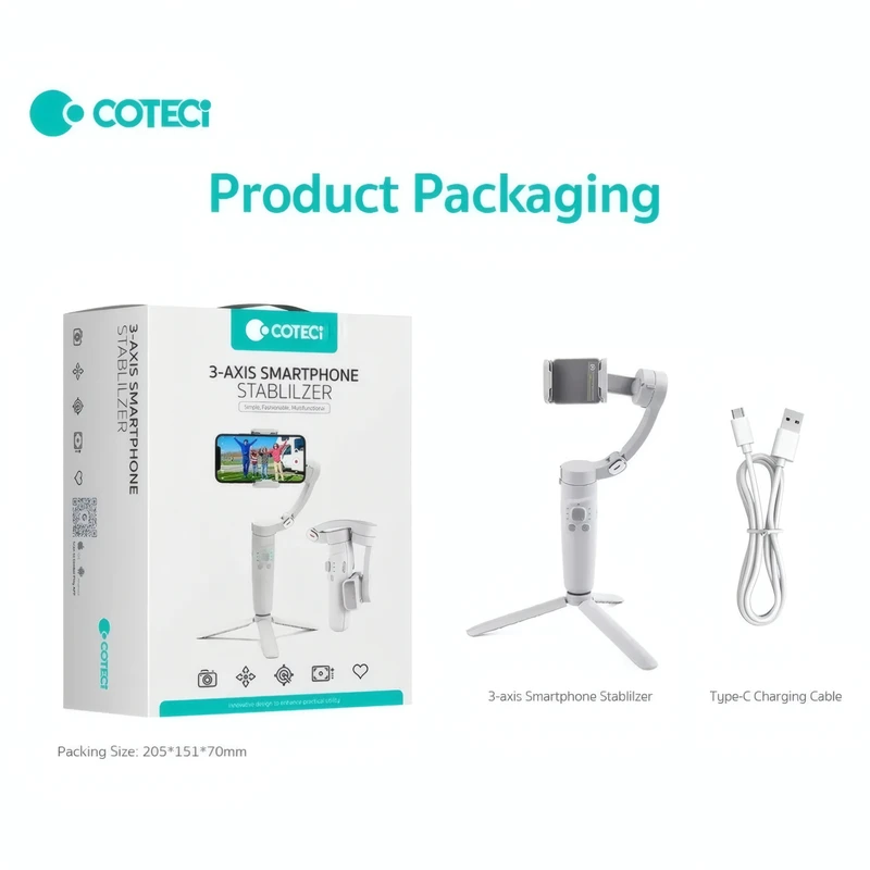 گیمبال و پایه موبایل سهمحوره کوتسی IH-001 با لرزشگیر حرفهای، حالت دنبالکننده، سهپایه تاشو، باتری قوی و کنترل آسان؛ مناسب فیلمبرداری، ولاگ، لایو و تولید محتوا.