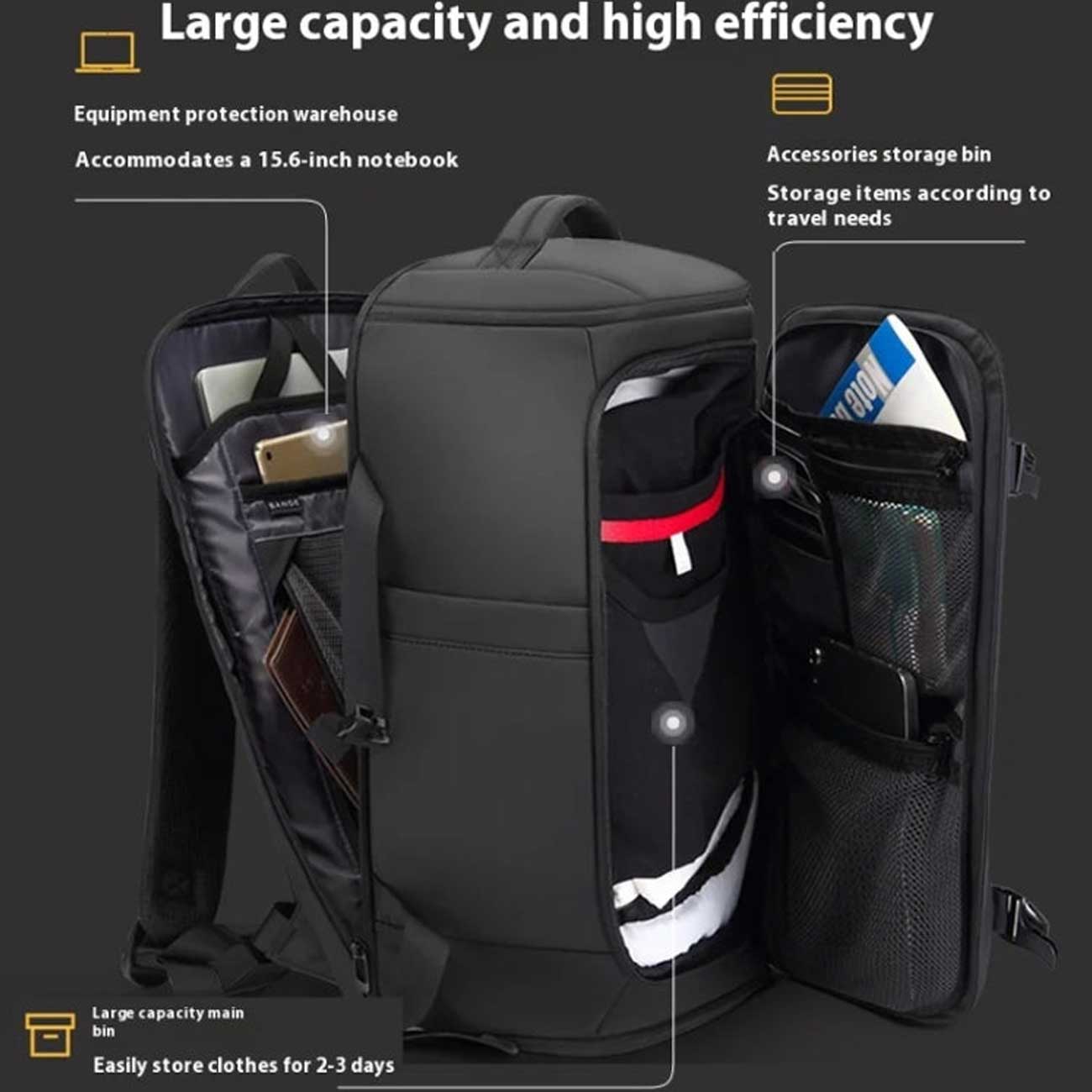 کوله پشتی مسافرتی، ورزشی و لپ تاپ 15.6 اینچ بنج BG-3029 با ابعاد46×31×20، جنس پارچه ضدآب، محفظه مجزاو ضربهگیر لپتاپ و تبلت، محفظه کفش و بخش لباس خیس