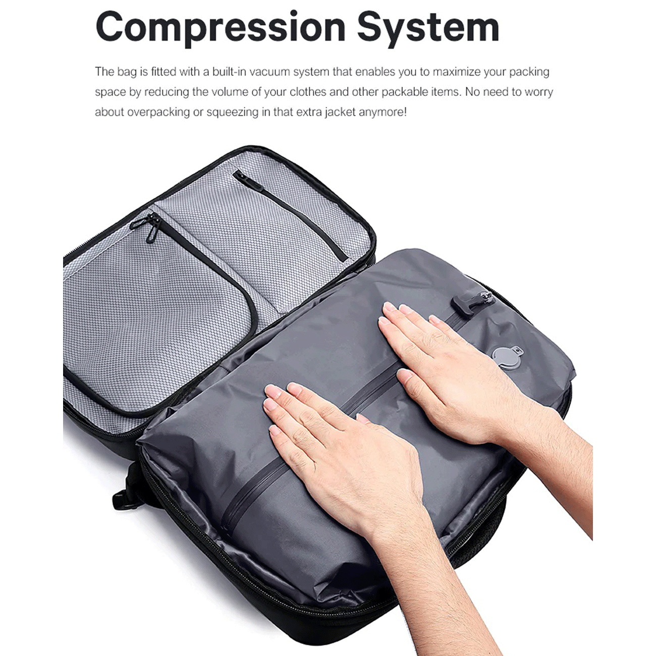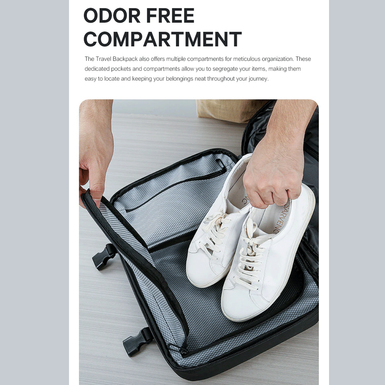 قابلیت افزایش حجم: با باز کردن زیپ گسترش، عمق کوله تا حدود ۱۲ سانتیمتر بیشتر میشه و فضای کوله از حالت روزمره به حالت مسافرتی تبدیل میشه.