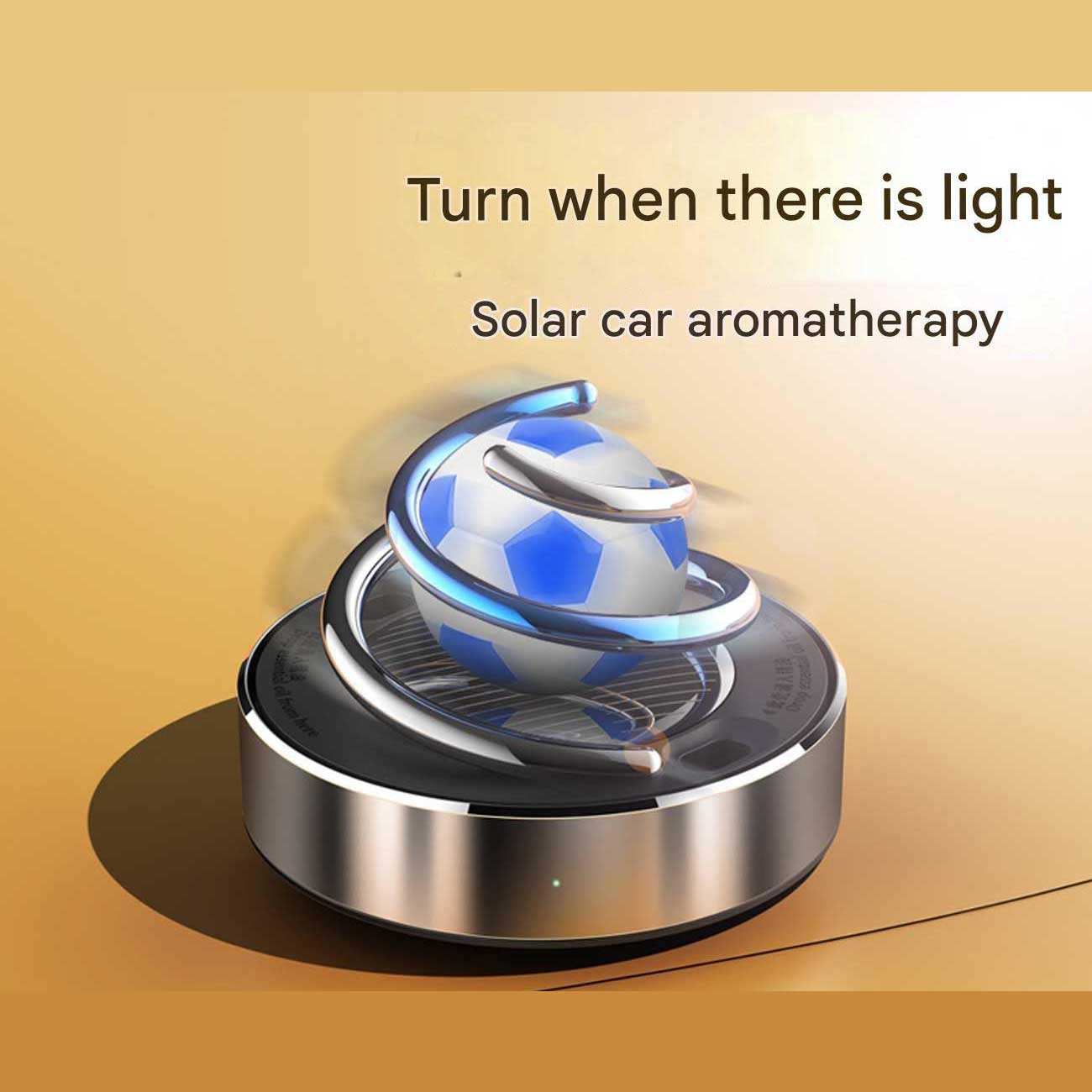 یک بوگیر دکوری و جذاب برای داخل خودرو است که بهکمک پنل خورشیدی کار میکند؛ یعنی نیازی به باتری و برق ندارد و با تابش نور، توپ فوتبال شروع به چرخش میکند و رایحه را در فضای کابین پخش میکند.