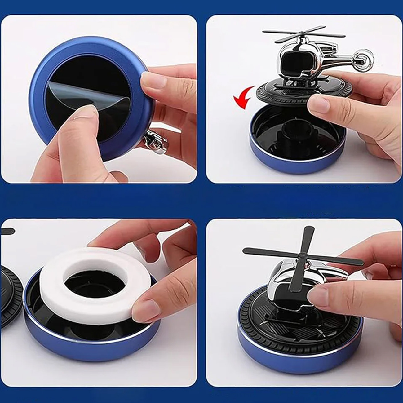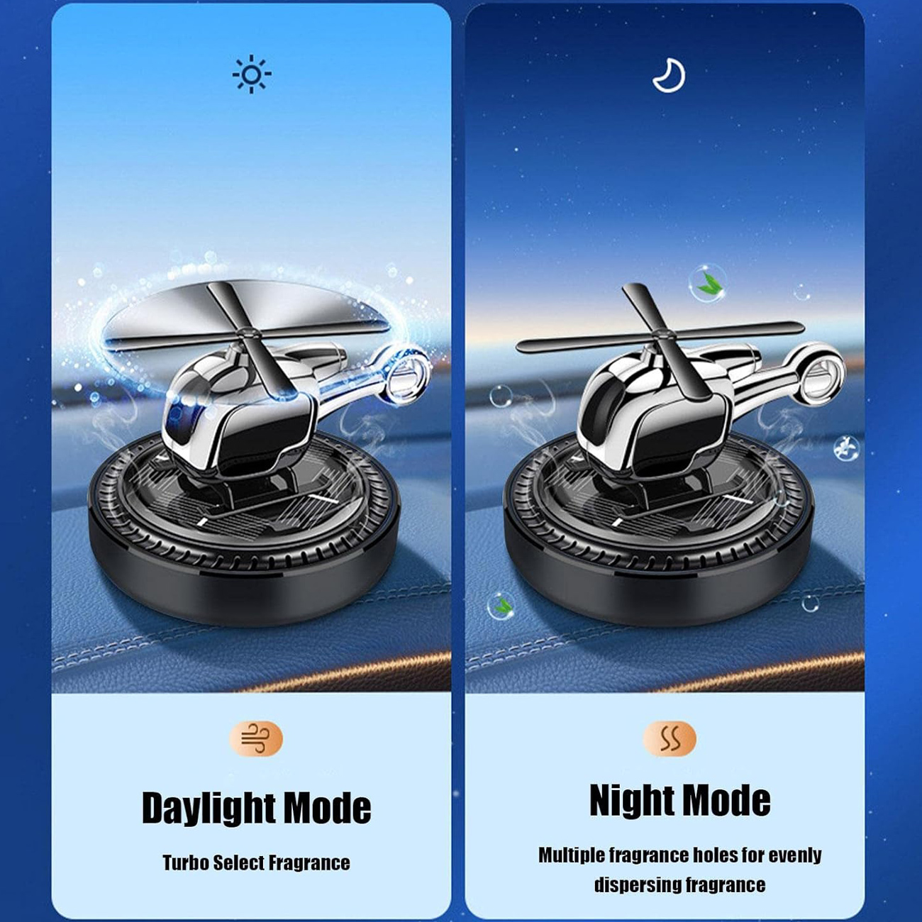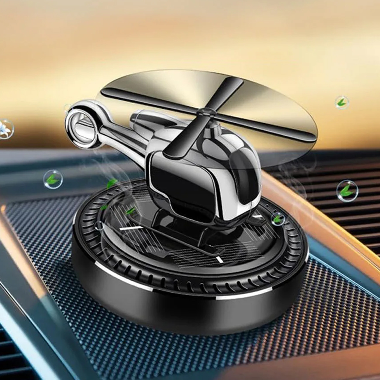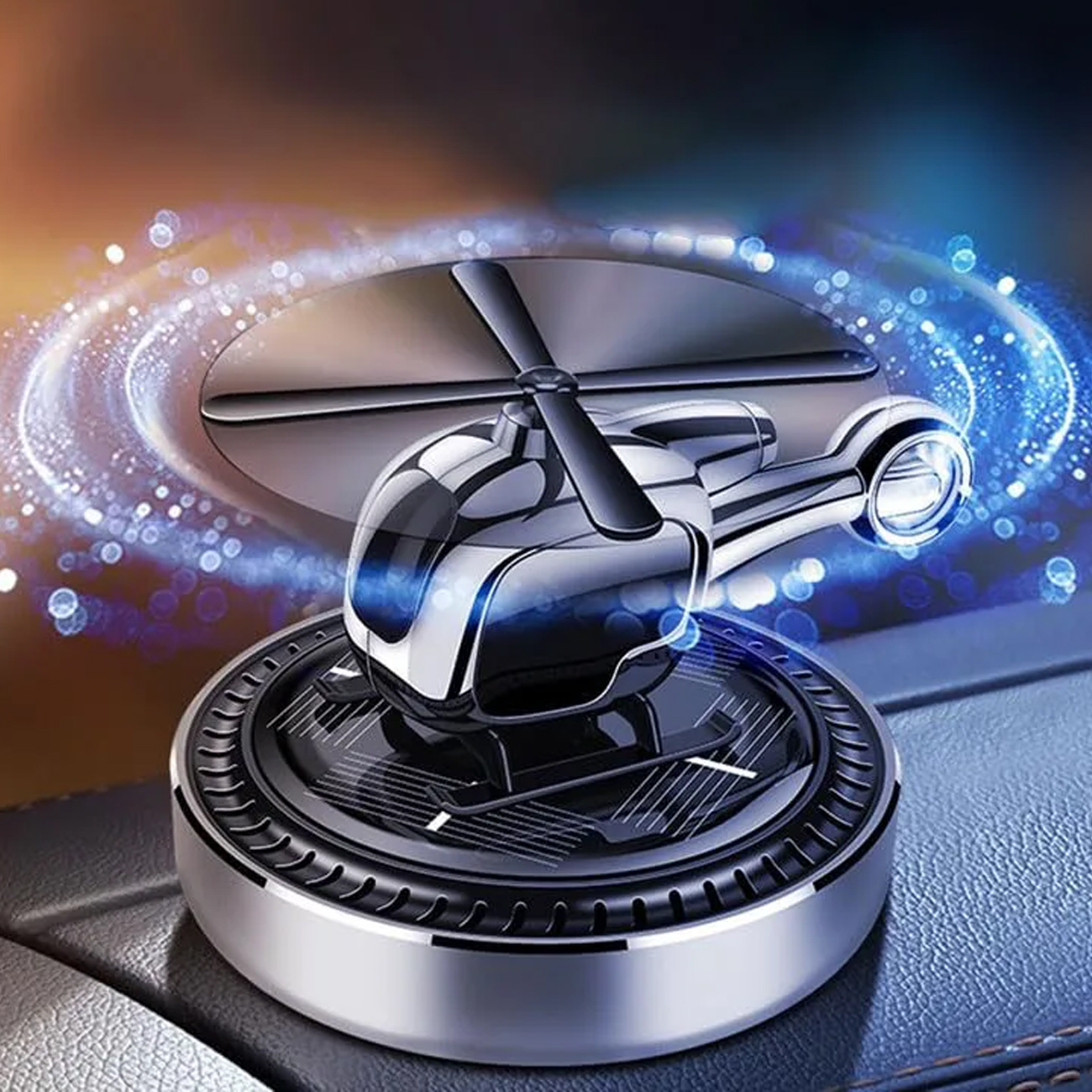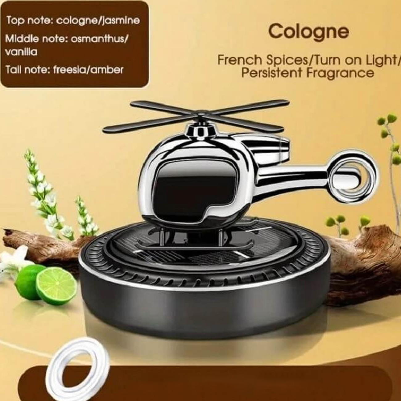 طراحی شبیه هلیکوپتر، همراه با صفحه خورشیدی و پرههای چرخان باعث میشه هر وقت نور بهش میخوره، هم بچرخه، هم رایحه رو تو کل ماشین پخش کنه.