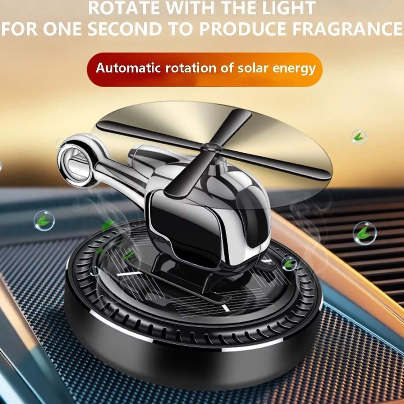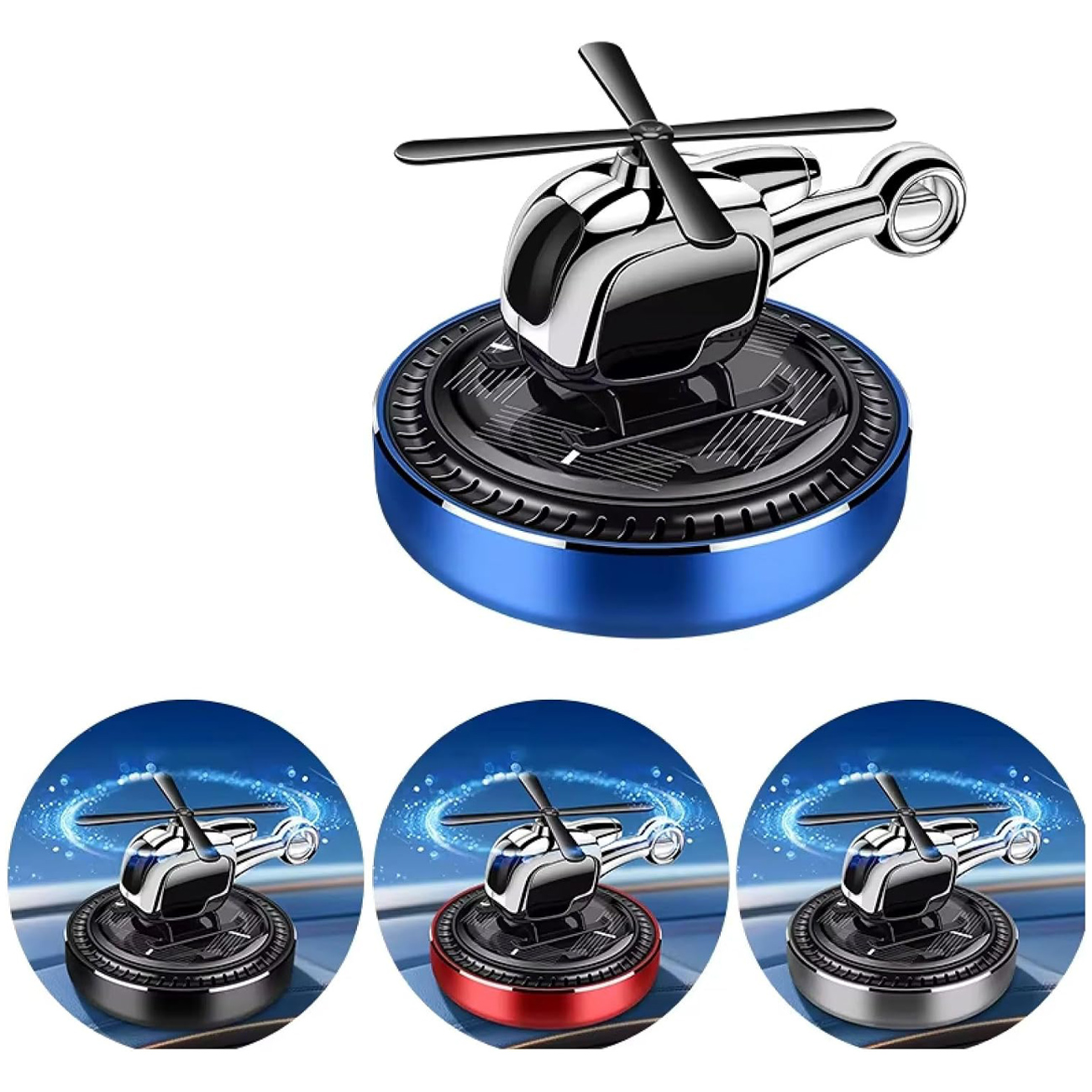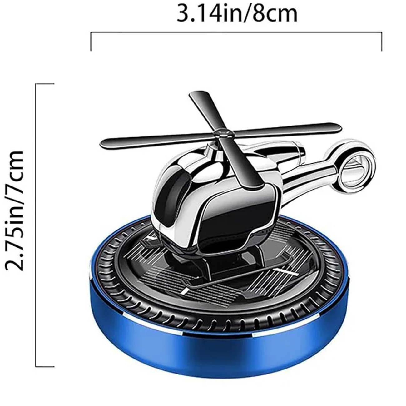 خوشبو کننده ماشین خورشیدی کارلوکس Carlux HELICOPTER طرح هلیکوپتر با صفحه خورشیدی، چرخش خودکار پرهها، پخش رایحه ۳۶۰ درجه، اسانس قابلتعویض و نصب روی داشبورد؛ دکوری و کاربردی.