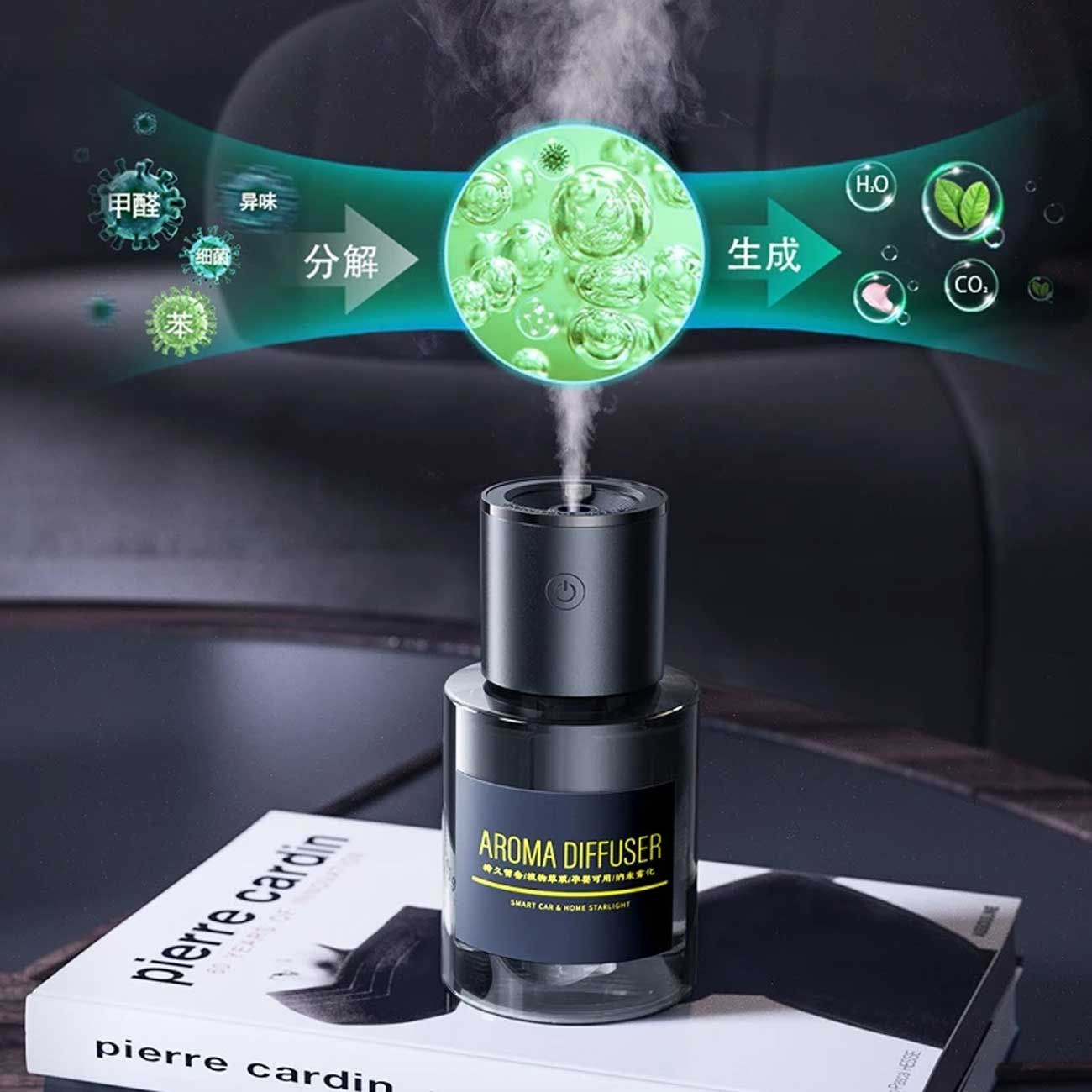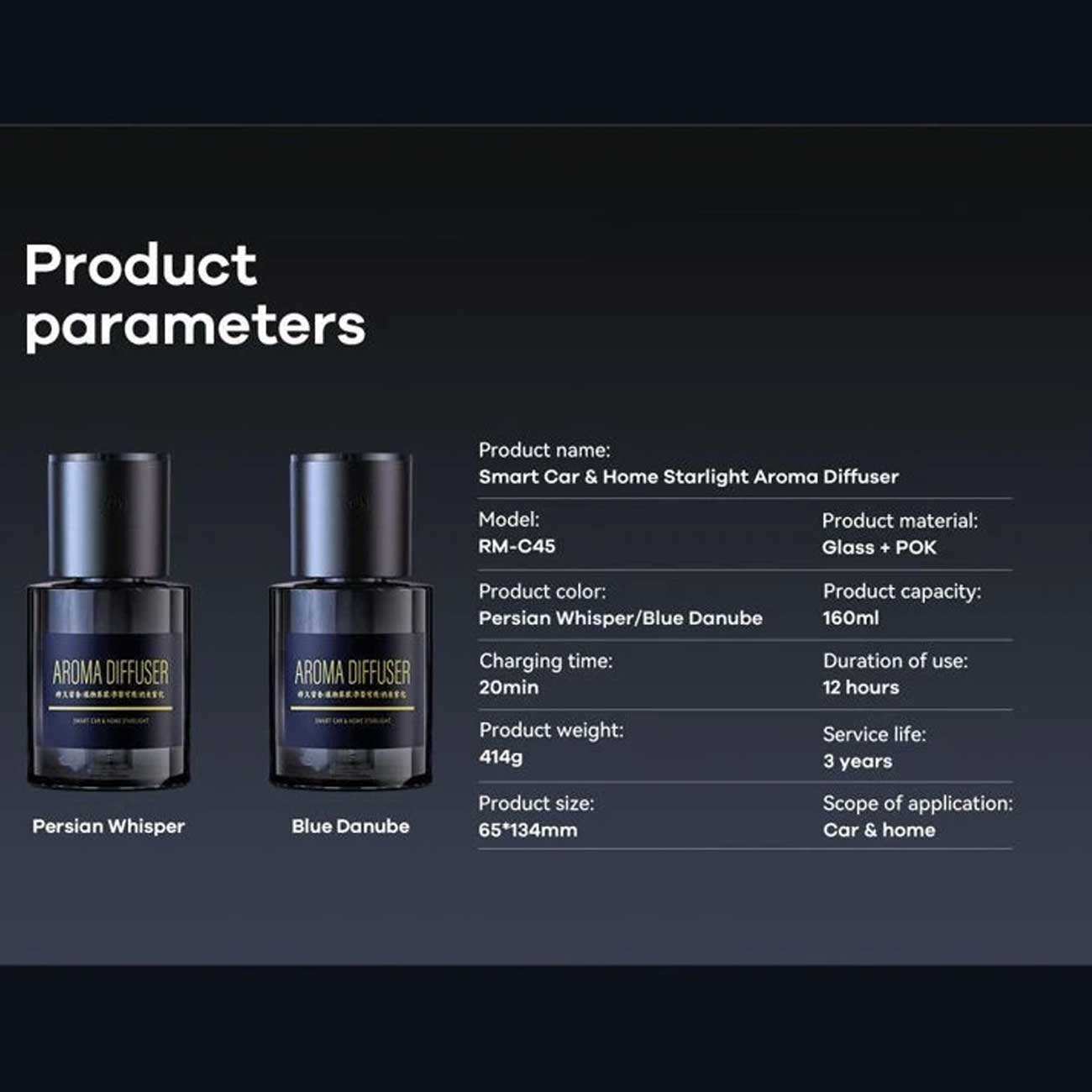 طراحی شیشهای لوکس، افکت نوری شبیه آسمان پرستاره (Starlight) و مخزن ۱۶۰ میلیلیتری باعث شده هم نقش خوشبوکننده رو داشته باشه، هم مثل یه اکسسوری دکوری روی میز یا کنسول ماشین بدرخشه.