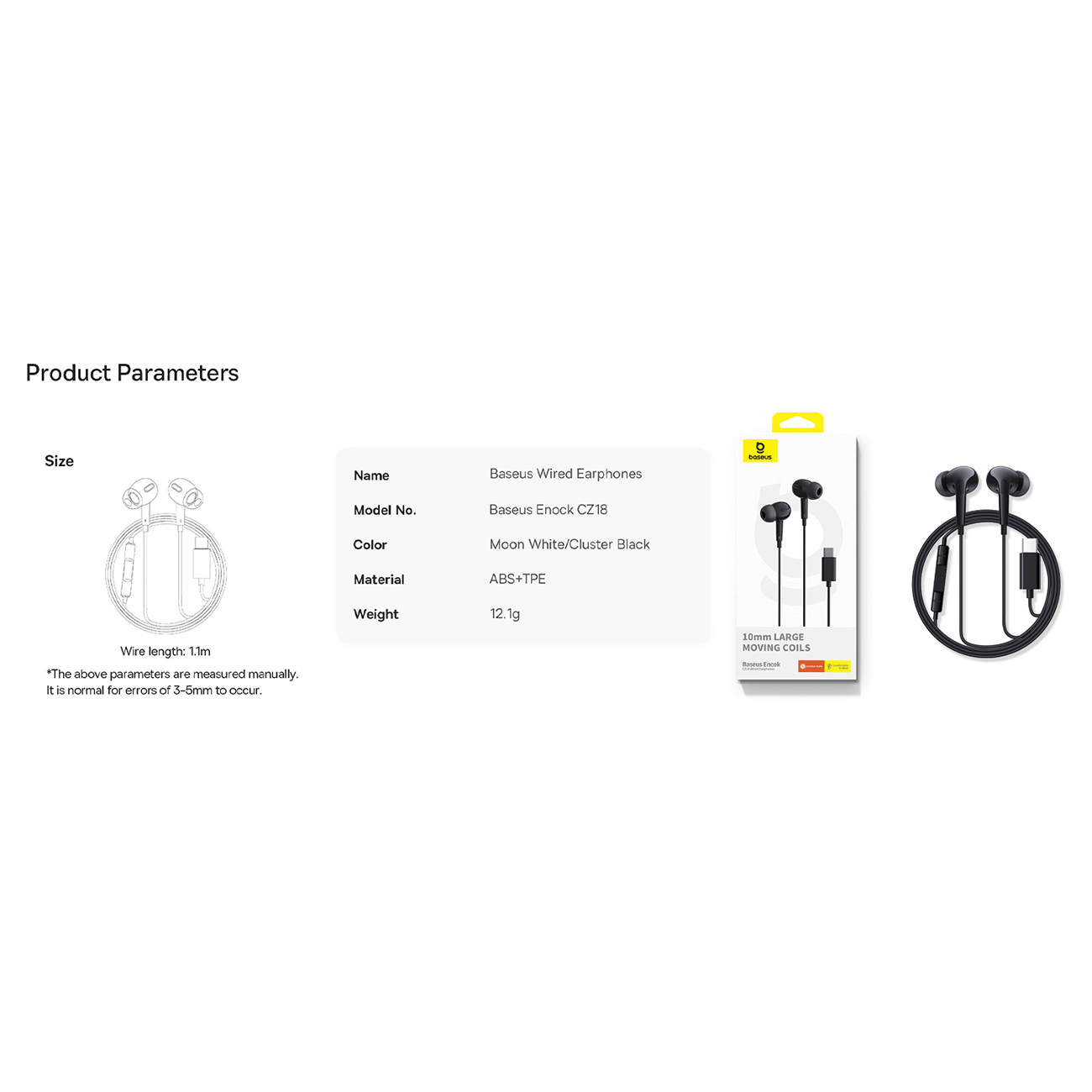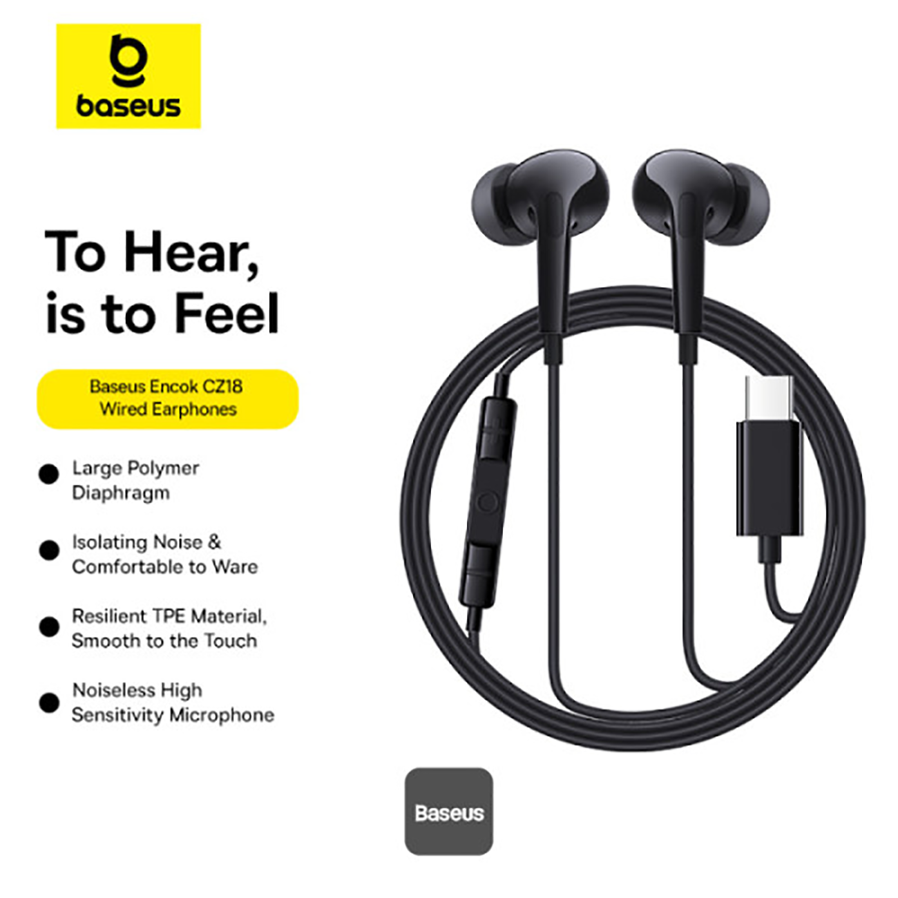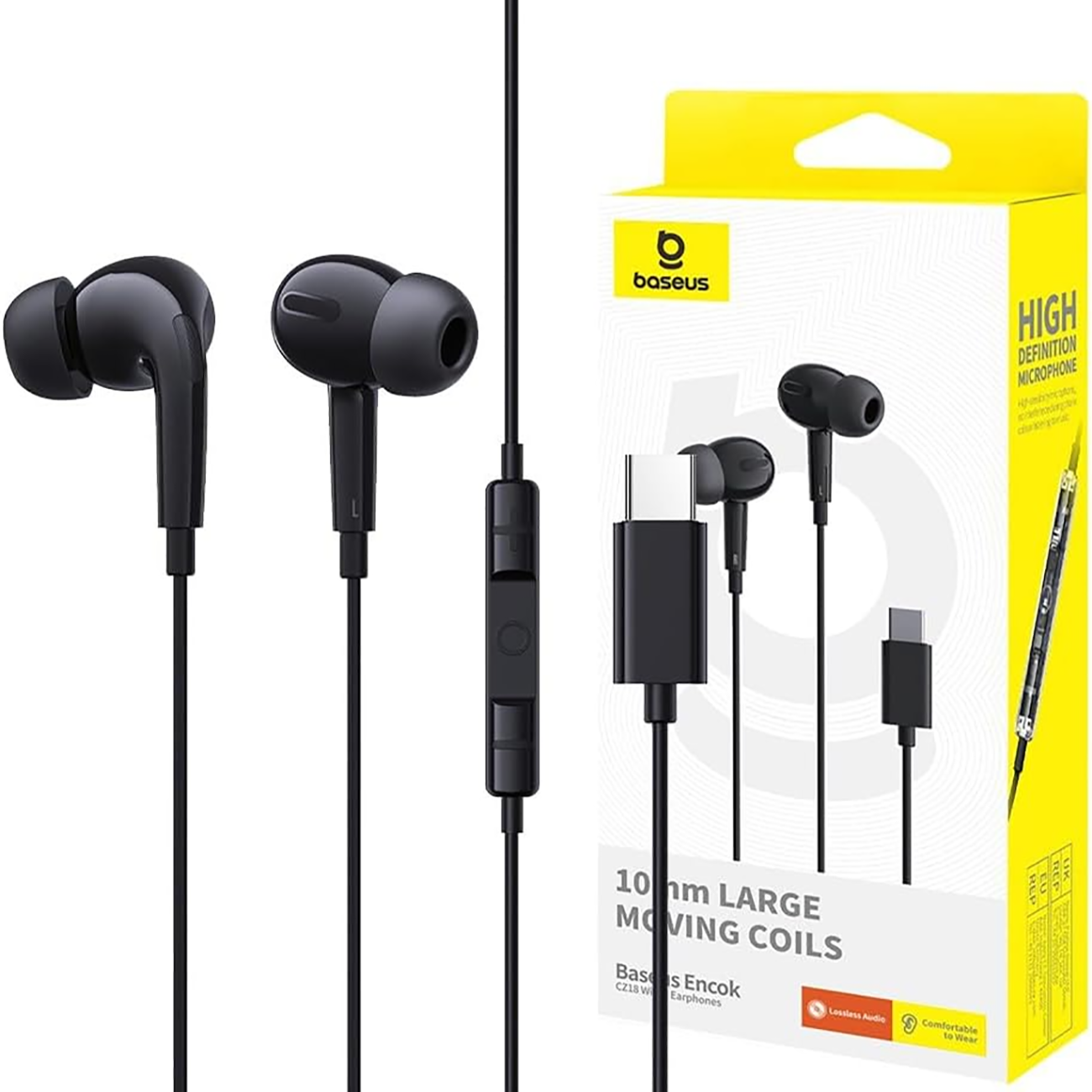 هندزفری سیمی تایپسی بیسوس Baseus Encok CZ18 با درایور 10 میلیمتری، میکروفون HD، طراحی ارگونومیک، ایزولاسیون صدای محیط و کابل مقاوم TPE؛ مناسب موسیقی، مکالمه و استفاده روزانه.