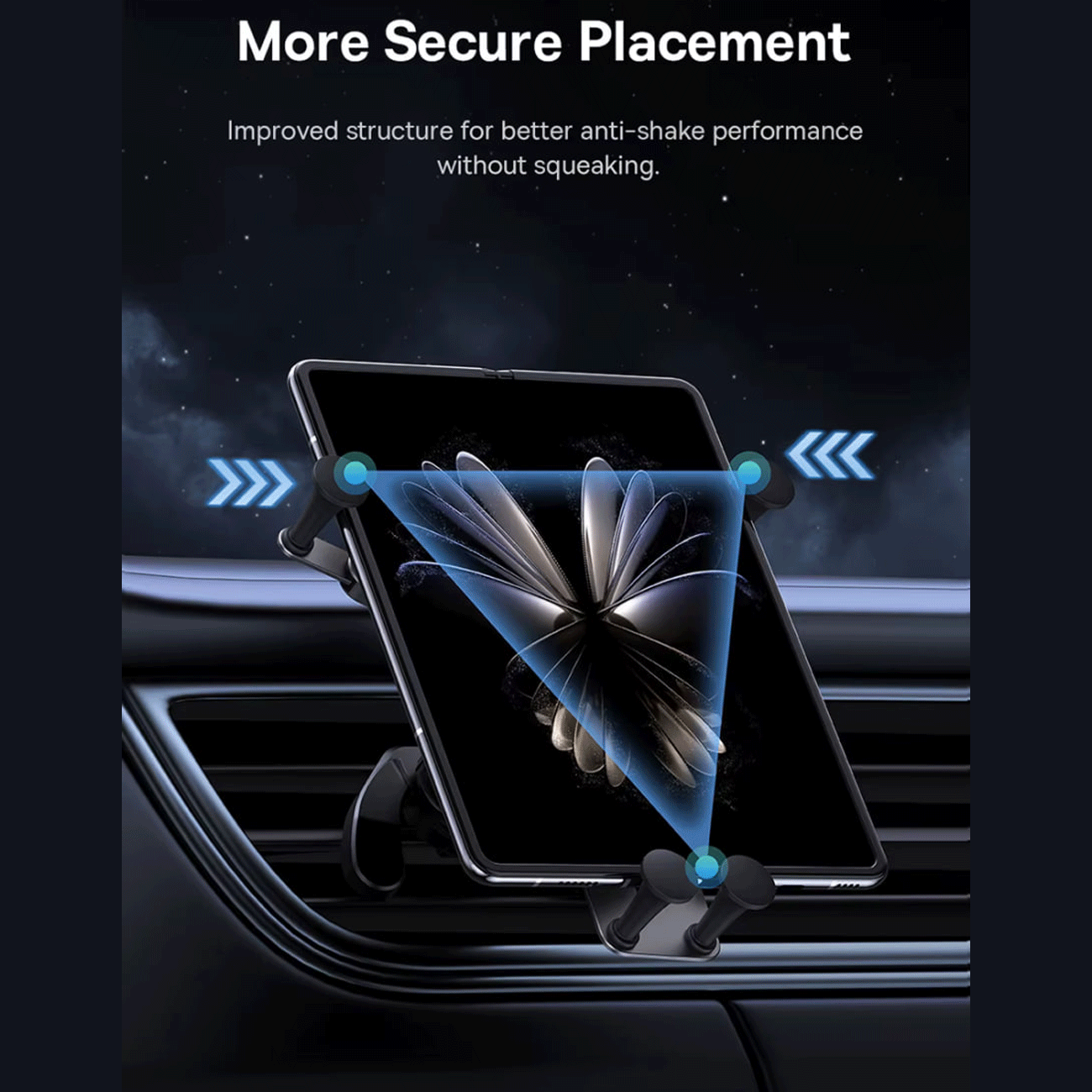 این پایه با طراحی محکم و بازوهای قابلتنظیم، گوشی یا تبلت را روی داشبورد یا محل نصب مناسب ثابت نگه میدارد و اجازه نمیدهد در پیچها، ترمزها و دستاندازها تکان بخورد.