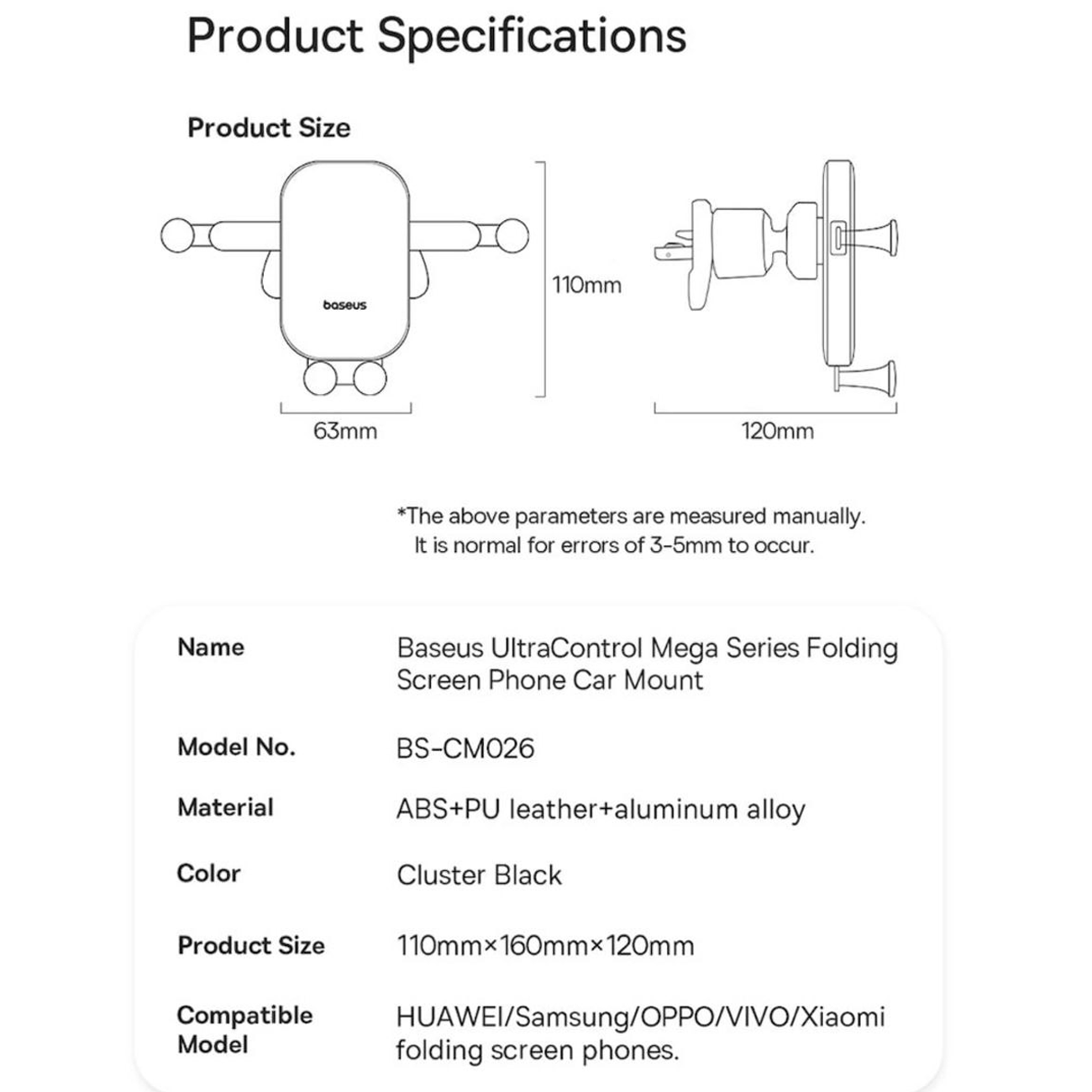| بازوی نگهدارنده | بازشوندگی تا 160 میلیمتر برای پوشش کامل گوشیهای بزرگ |