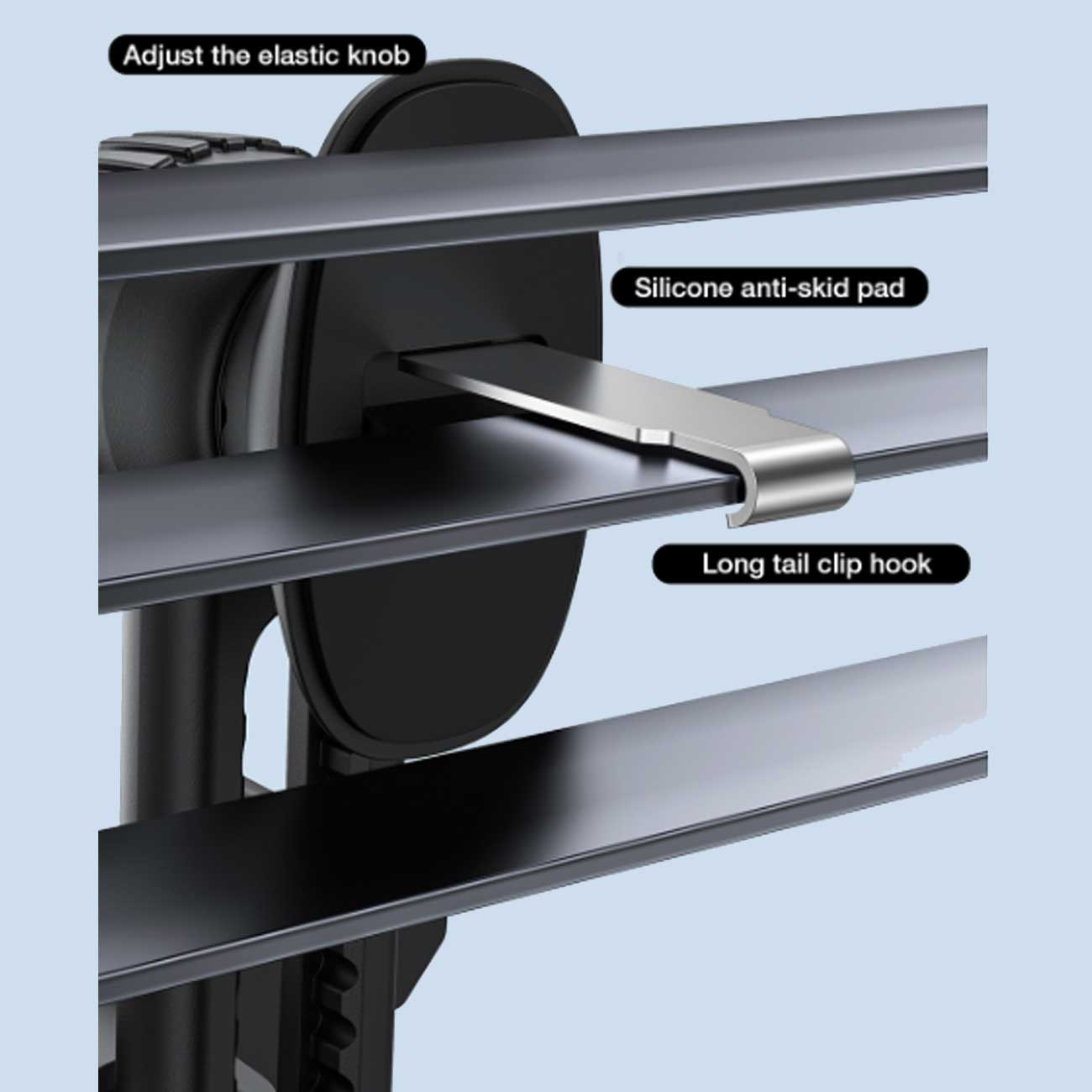 یک نگهدارندهی کوچک اما بسیار قدرتمند برای نصب روی دریچه کولر خودرو است. گیرهی فلزی محکم و بازوهای ضدلغزش آن، گوشی را در مسیرهای ناهموار و دستاندازها بدون هیچ لرزشی ثابت نگه میدارند.