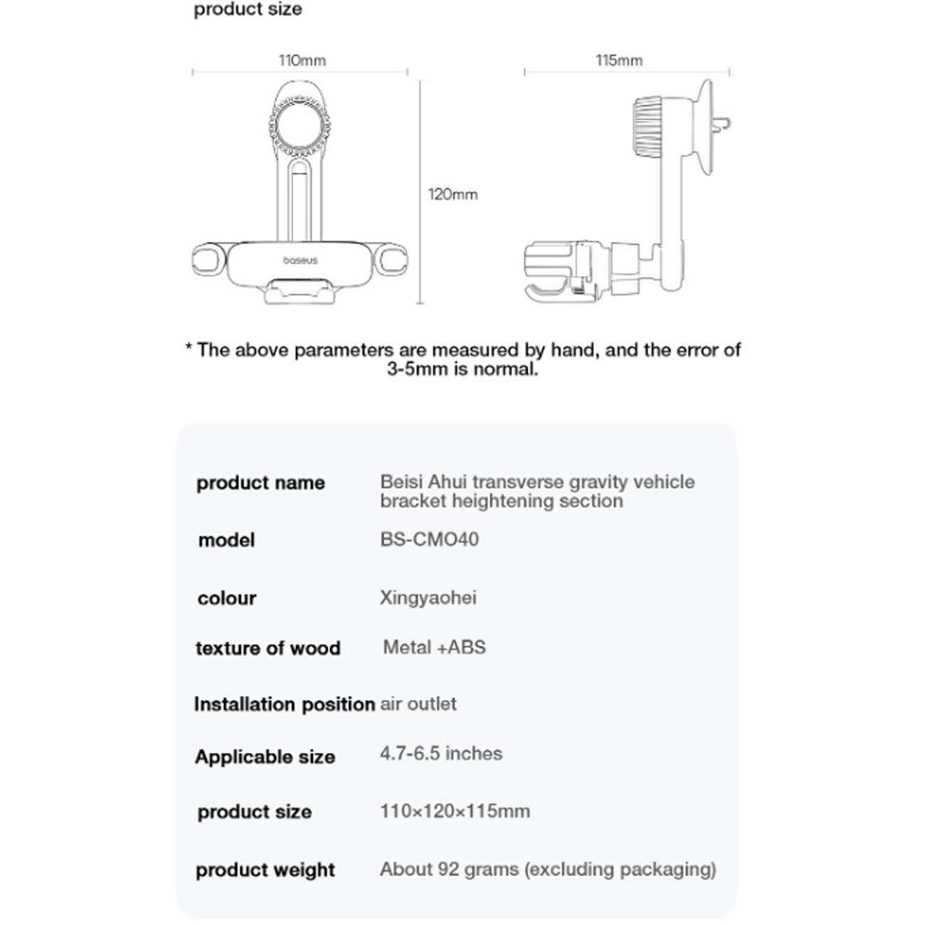 Baseus BS-CM040 Horizontal Car Phone Holder Metal Gravity Car Air Vent Cellphone