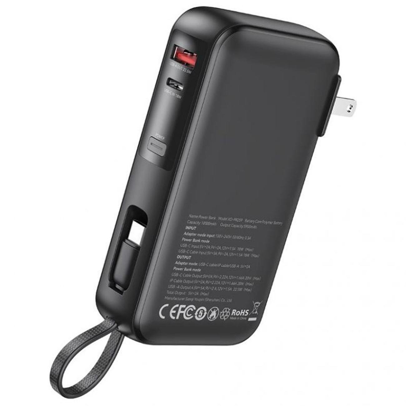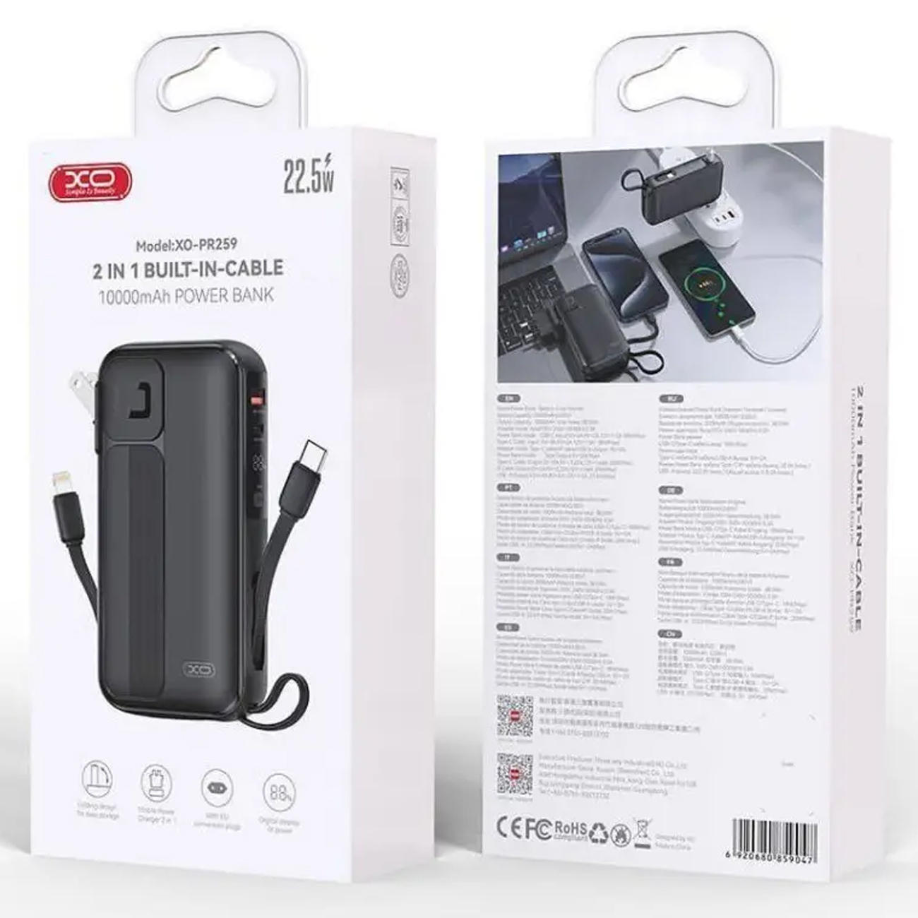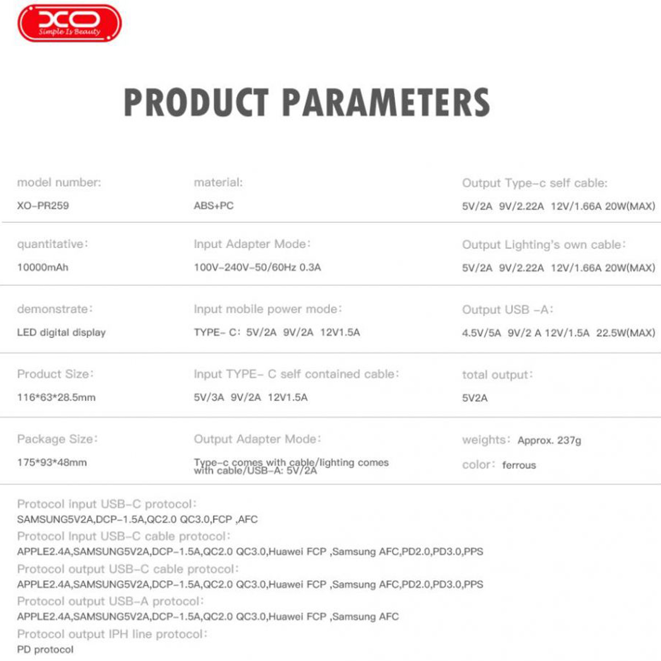 Power Bank XO PR259 10000mAh with data cable Type-C, Lightning