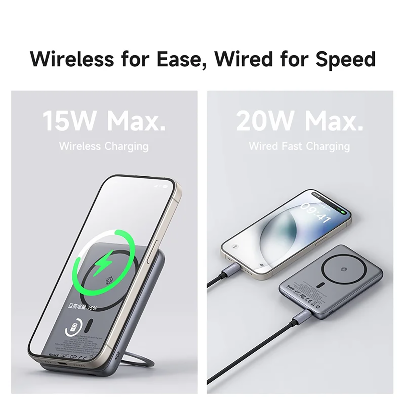 | توان خروجی | شارژ وایرلس: تا 15 وات شارژ با کابل Type-C: تا 20 وات (PD) |