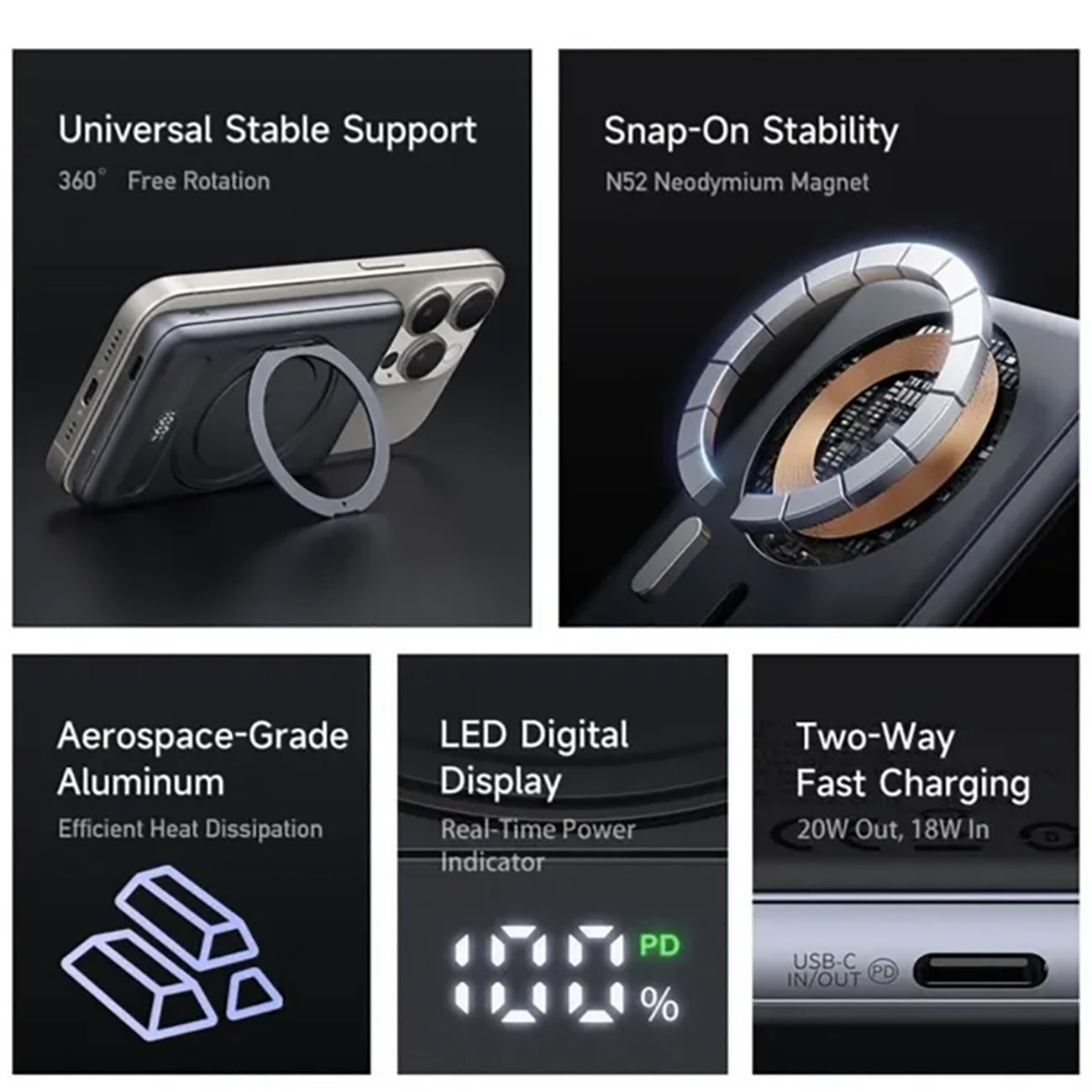 | سازگار با | آیفونهای سری 12 تا 15 با مگسیف گوشیهای اندرویدی با قابلیت شارژ وایرلس سایر دستگاههای USB-C |