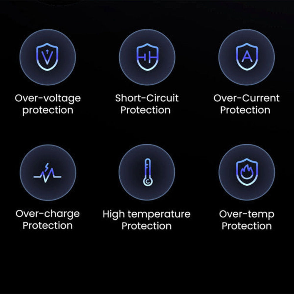 | ایمنی بالا | محافظت در برابر اضافهولتاژ، جریان بیشازحد، دمای بالا، اتصال کوتاه، شارژ/دشارژ بیشازحد |