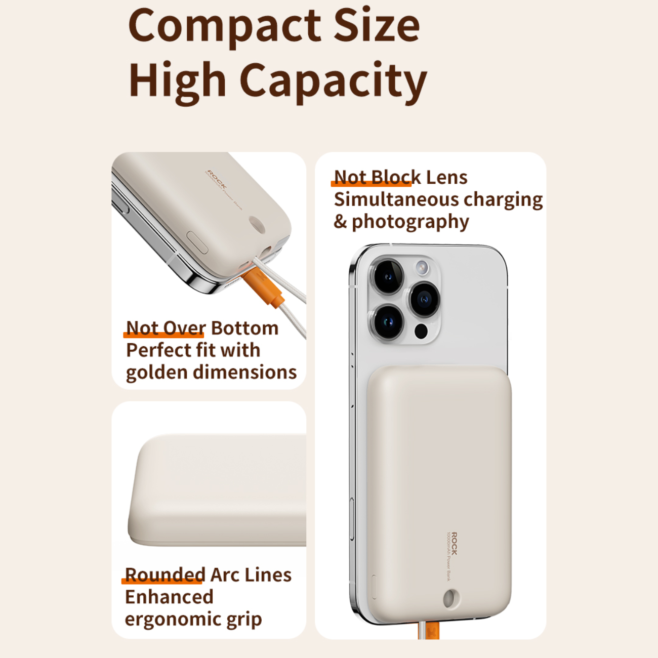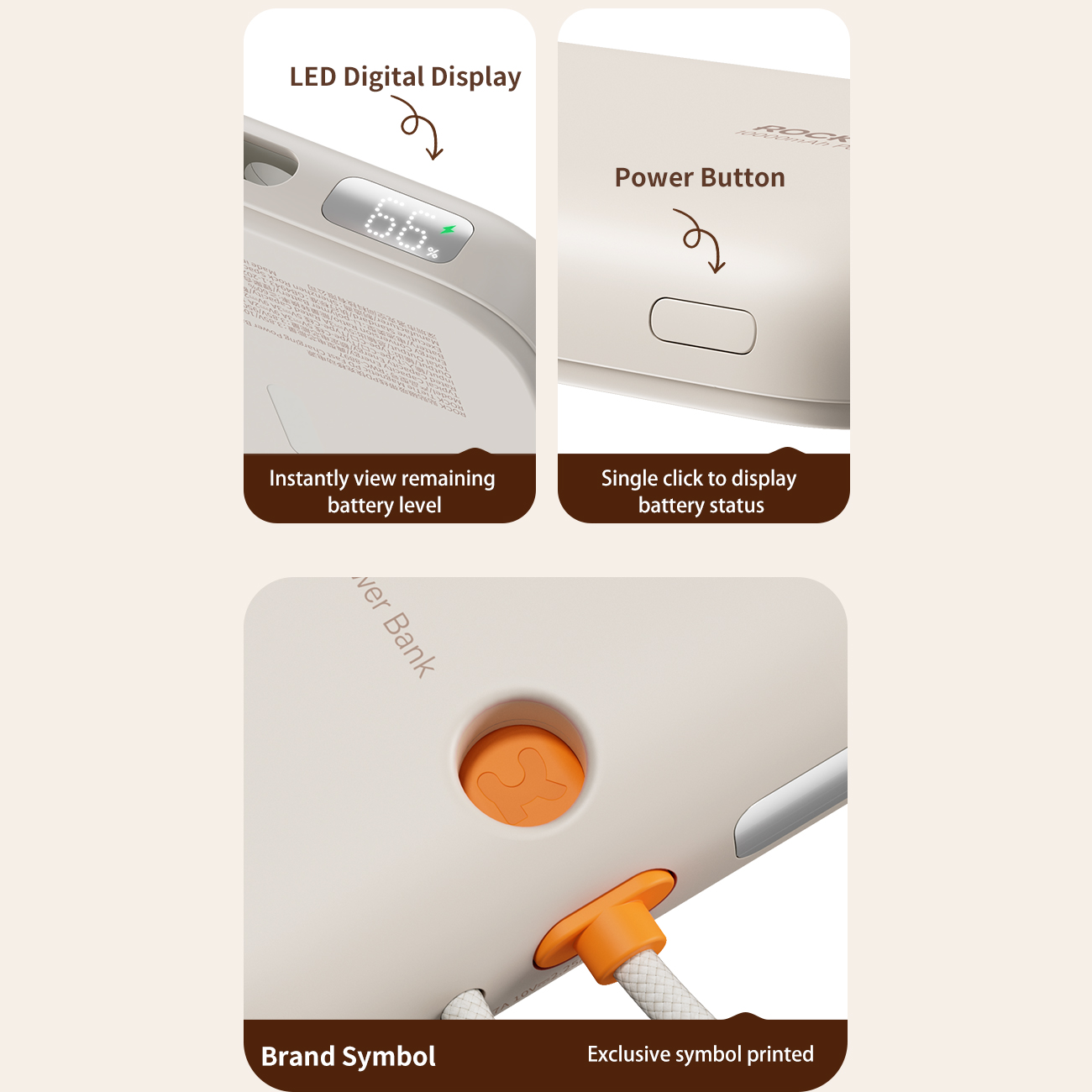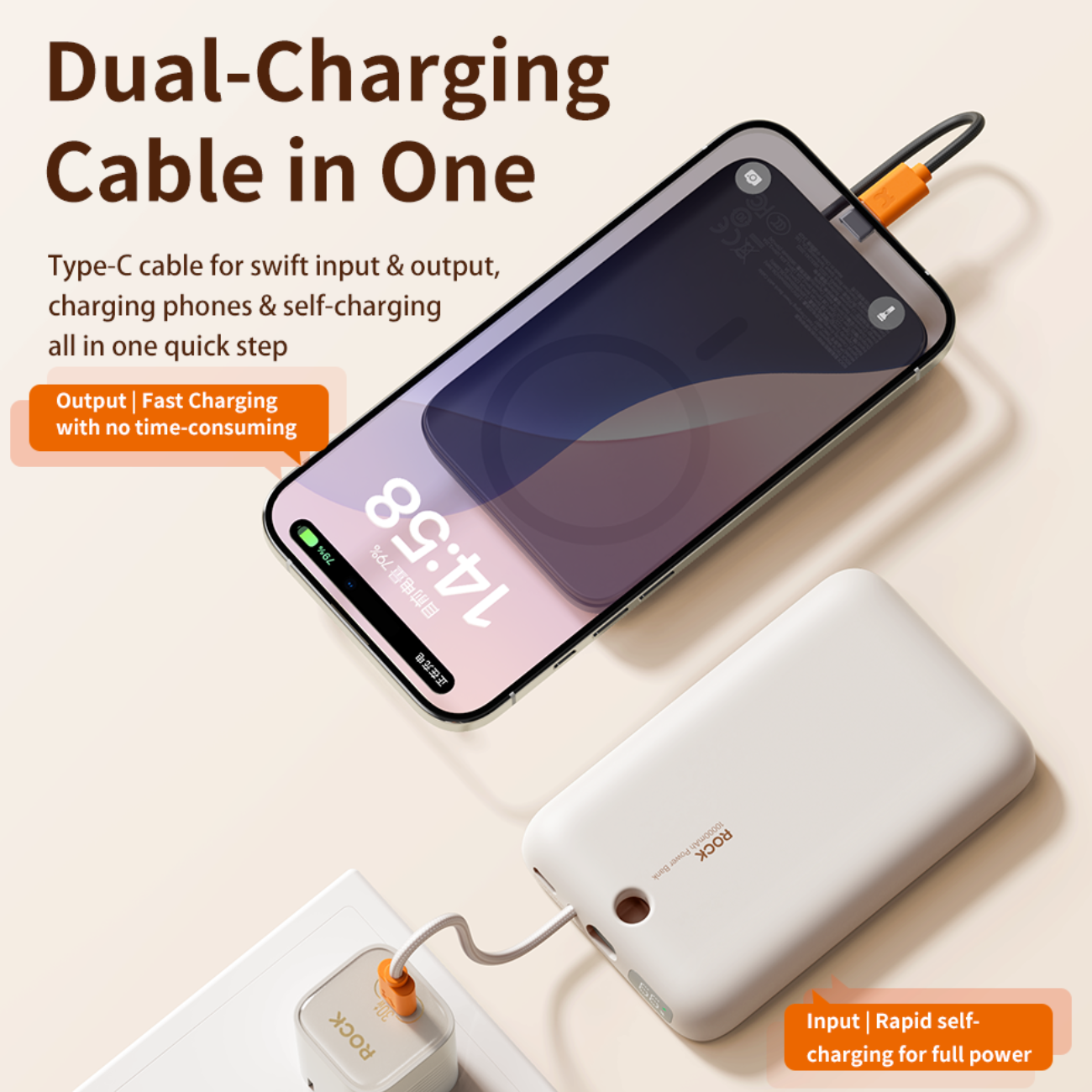 ROCK TieTie Magnetic PD Fast Charging Power Bank with Cable 10000mAh RWC-8897