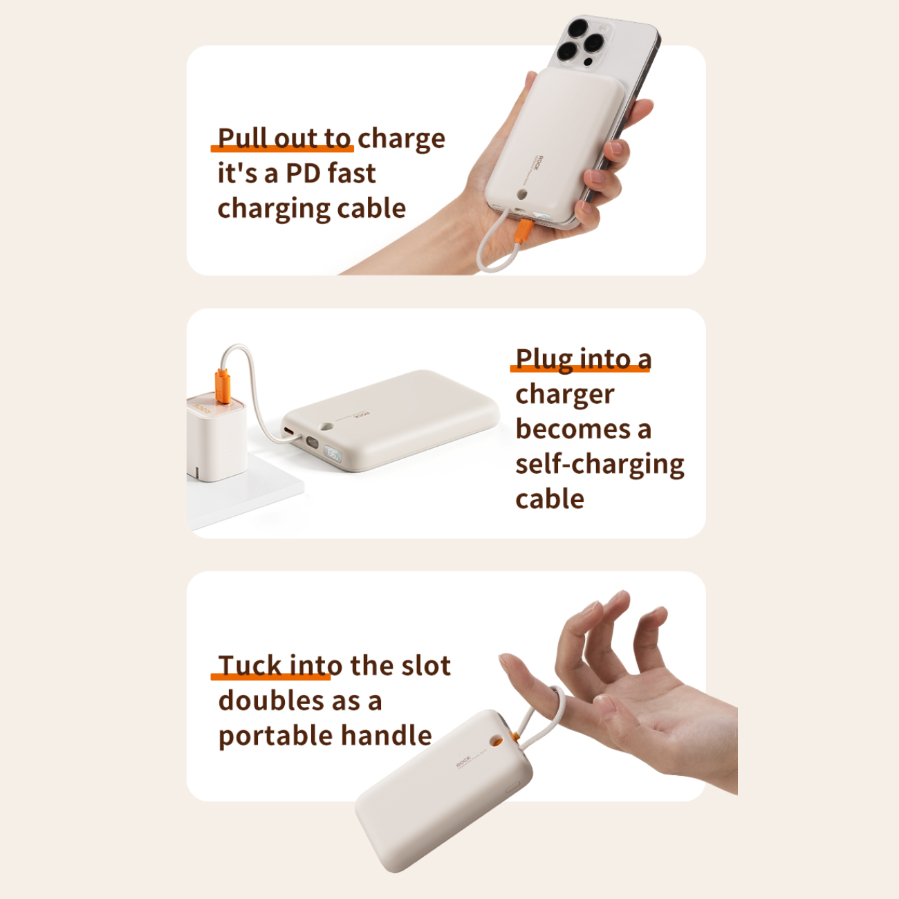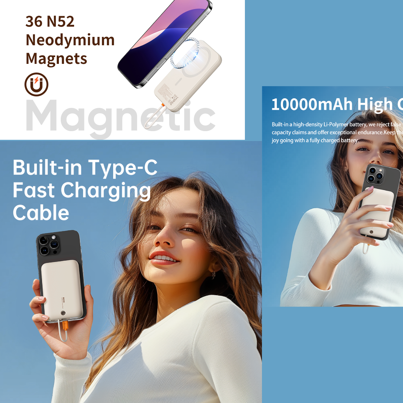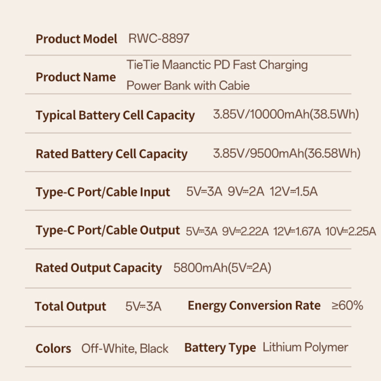 ROCK TieTie Magnetic PD Fast Charging Power Bank with Cable 10000mAh RWC-8897