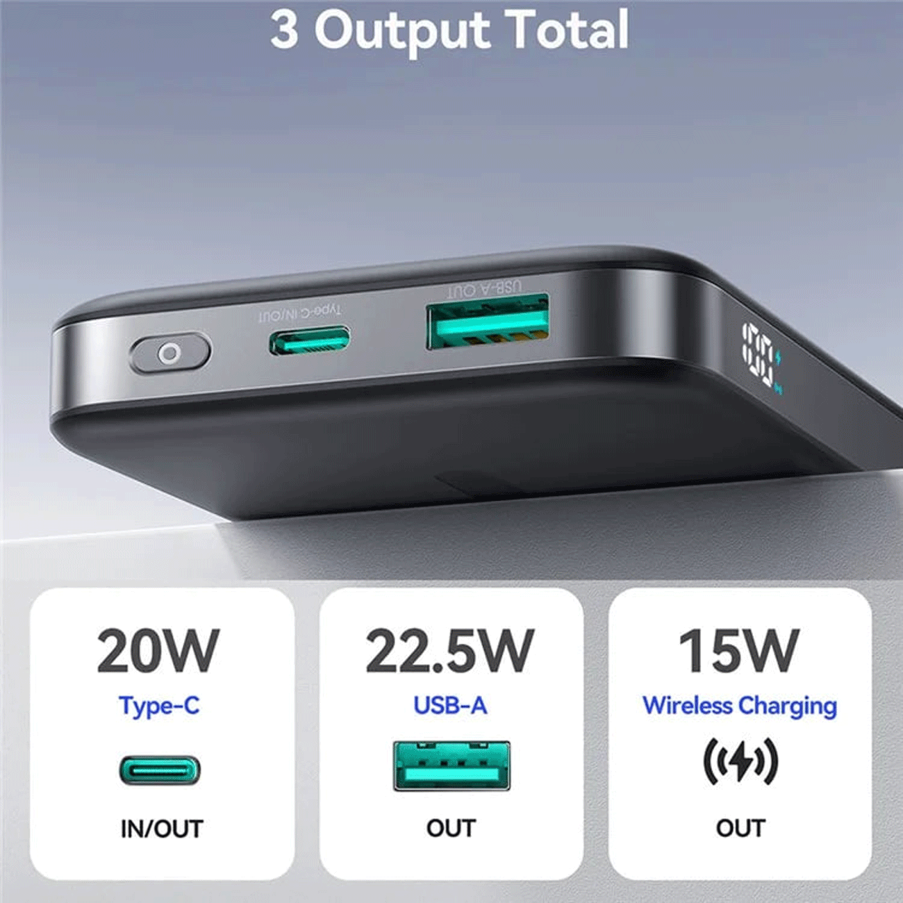 یک پاوربانک 3-خروجی و بسیار کاربردی است که برای کاربران حرفهای، دانشجوها، مسافرها و کسانی که شارژ سریع و بیسیم میخواهند، انتخابی عالی محسوب میشود.