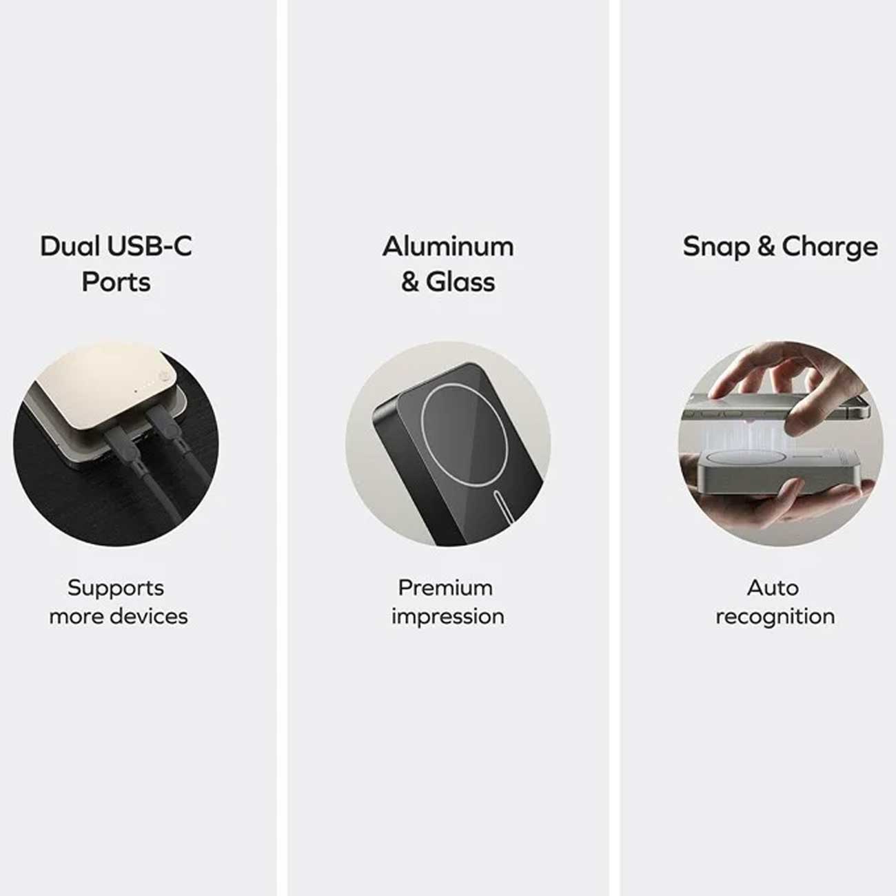 این پاوربانک میتواند همزمان بیسیم و کابلی شارژ کند؛ یعنی دو دستگاه را با دو روش مختلف شارژداری همزمان پشتیبانی میکند.