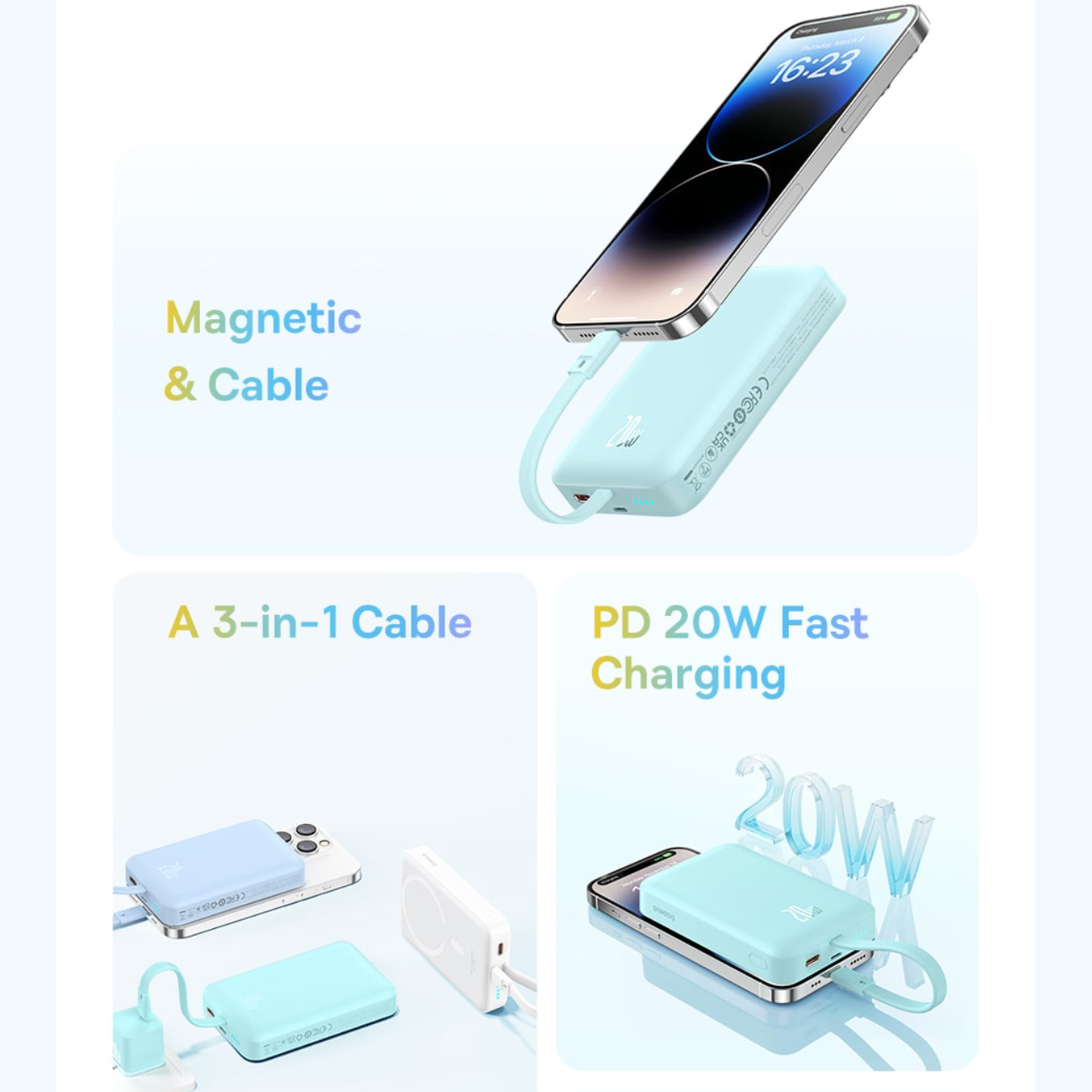 | امکانات و قابلیتها | - پاوربانک مغناطیسی، شارژ سریع - پشتیبانی از شارژ بی سیم 15 واتی و شارژ PD 20 واتی - مکانیزم مغناطیسی، MagSafe - شارژ ایمن با حفاظت 10 گانه - جذب قوی 13N |