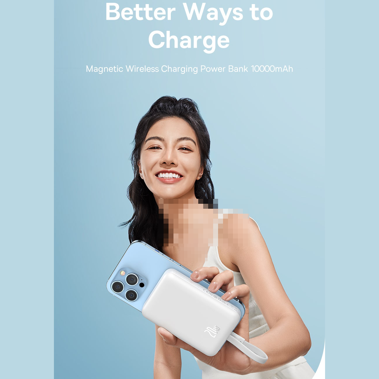 پاور بانک وایرلس مگنتی 20 وات 10000 با کابل لایتنینگ بیسوس P10022108212-00