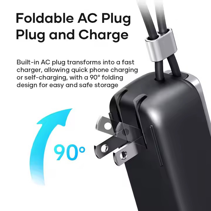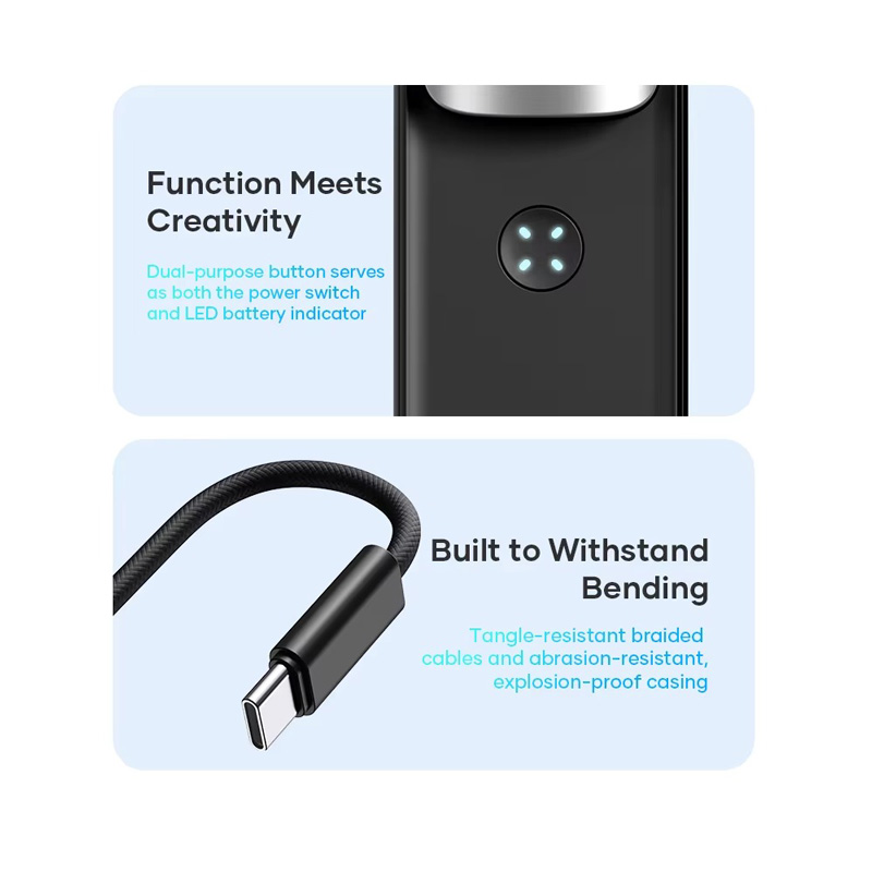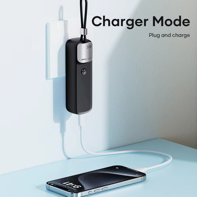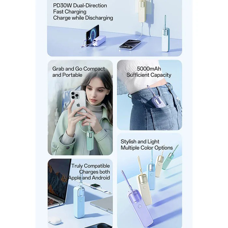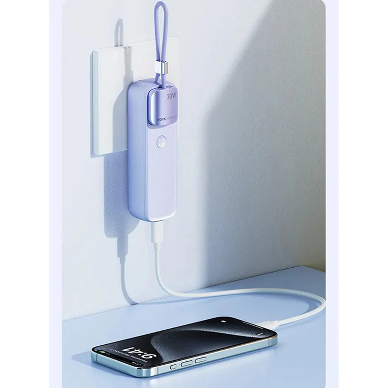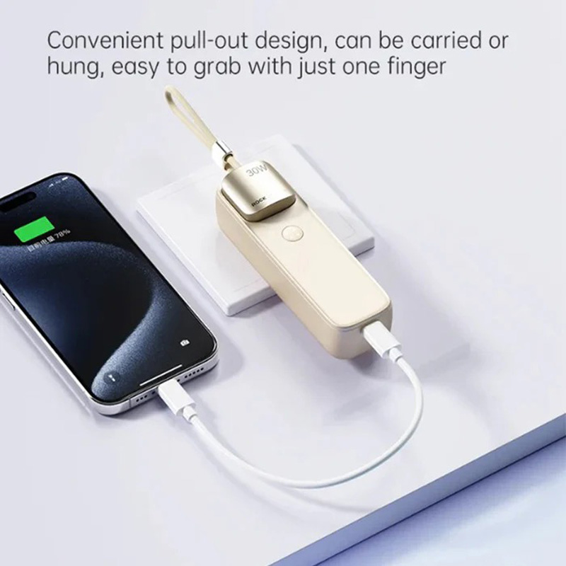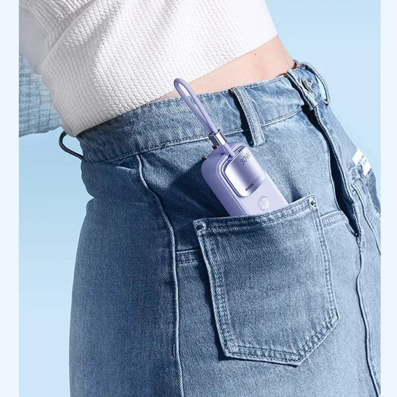 مهمترین ویژگی این پاوربانک داشتن کابل Type-C متصل است؛ یعنی بدون نیاز به حمل کابل اضافه، همیشه آماده استفاده است و یک انتخاب عالی برای داخل کیف کوچک، جیب یا استفاده سریع در مسیر محسوب میشود.