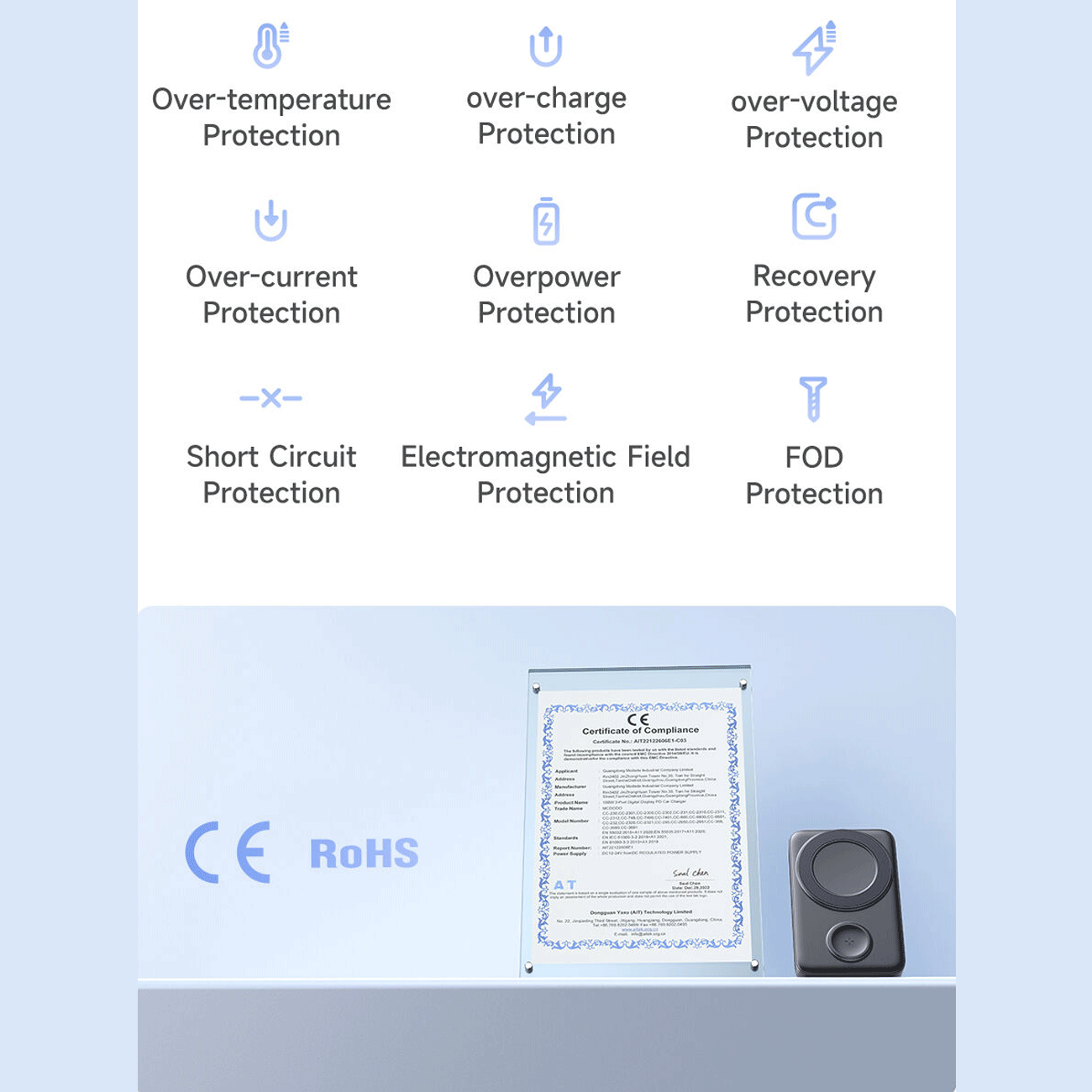 سیستم محافظت هوشمند داخلی، دستگاهها را در برابر اتصال کوتاه، داغ شدن، اضافهجریان و اضافهولتاژ محافظت میکند و شارژ ایمنتری ارائه میدهد.